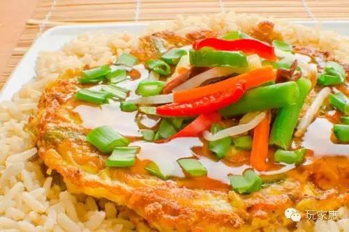 真正的芙蓉蛋其实是边缘呈荷叶状、外酥内滑的鸡蛋煎饼,但是到了美国就完全变了样,成了鸡蛋和蔬菜的混合。据说,美国的芙蓉蛋是由曾在伐木场或铁路上工作的美籍华人大厨们创造的。