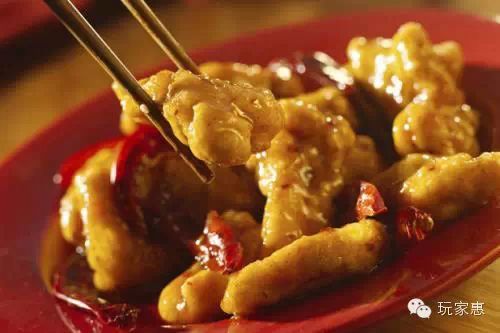 这道菜和中国的糖醋鱼有异曲同工之处,但是两种菜的酱料完全不同。美国的糖醋汁里含有番茄酱,而中菜里却基本不使用,而且美版的味道会更甜。当然这道菜你应该会比较容易找到,不过糖醋里脊的味道绝对是不一样的。
