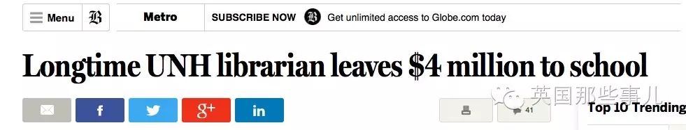 在物质方面,他过着犹如苦行僧的生活。 鲜少买衣服,每天早餐就是一包薯片一罐可乐,中午,一个简单的三明治就。到了晚上回家,把冰箱里冷冻的食物热一热,没人见过他出去吃饭。 他开着一辆1992年产的小破车,修修补补好多次,从来没想过要换。 在他的字典里,未曾有过花钱享乐这几个字。 就这样,Robert在图书馆工作了一辈子,2014年,带着满满地不舍,他退休了... 退休之后,他仍然跟图书馆的同事们保持着紧密的联系,他无儿无女,生病需要人照顾时,图书馆的员工一个一个都会挺身而出。 虽然有着同事们无微不至的照顾,Robert 还是在退休一年后就离开了人世...享年77岁... 然而 就在他离世后不久,人们发现了他的遗嘱... 他把所有钱都留给了他工作了一辈子的新罕布什尔大学。 更让人惊讶的是遗嘱上的数目: 近400万美元! 一个图书管理员,生前甚至都没吃过一顿所谓的豪华午餐,却给母校献上了攒了一辈子的积蓄...