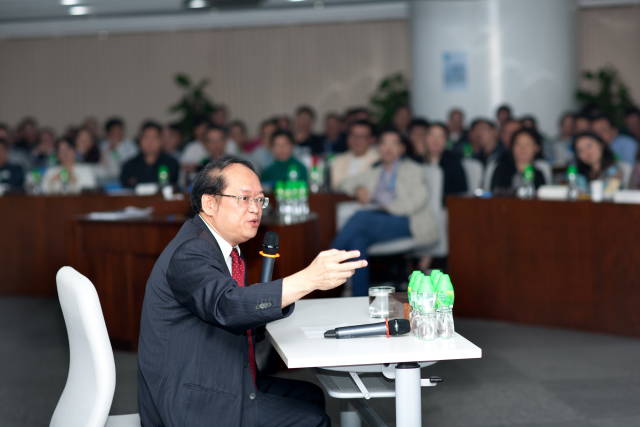 2014年10月26日,台湾大学哲学系傅佩荣教授做客长江商学院,带来秋季开学模块人文第一课:哲学与人生。傅佩荣教授打通中西方哲学,博采众家之长,高屋建瓴地阐述文化的特点与哲学研究的框架,深入浅出地梳理西方苏格拉底、存在主义的观点和中国儒道哲学的内涵。他的课生动有趣,引人入胜,受到学员们的热烈欢迎。