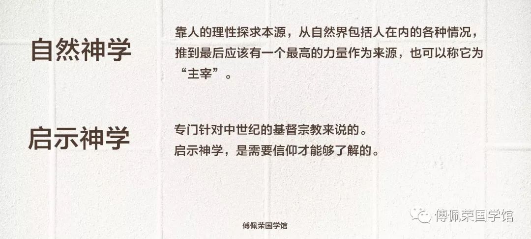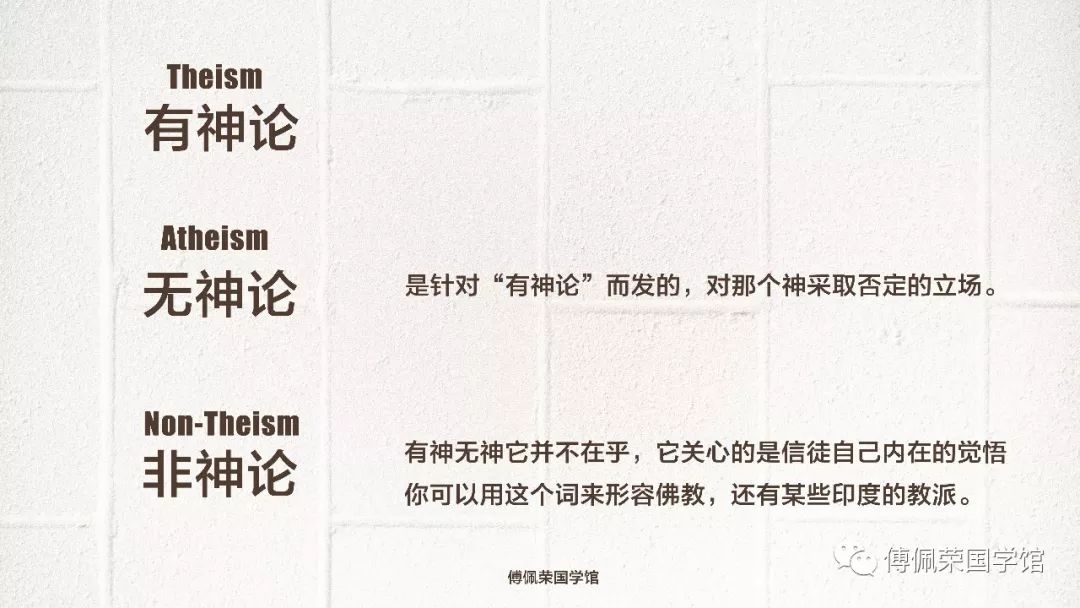 所以很多人会说自己是无神论,但恐怕要先界定他所谓的“神”是指什么。我们这边再补充一句,所谓的神所指的既不是自然界也不是人类,而是这一切的来源以及归宿。重要的是从哲学的角度来看,它提供一个解释的原则,也就是说,你要理解这变化的一切有来源也有归宿,就必须考虑有一个这样的存在。