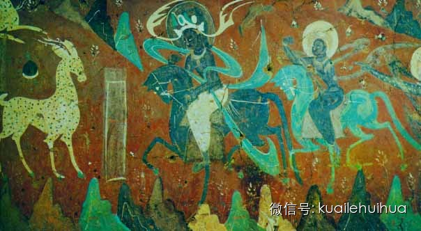 而在距今1500多年的敦煌石窟中,保存着一万多幅珍贵的壁画,但不同时期的壁画色彩也是不同的。如北魏时期主要用红棕色调,配以蓝、黑色;唐朝时期则增添黄颜色,色彩的应用也多彩多姿,明亮而华丽;而宋朝则以蓝绿色调为主。