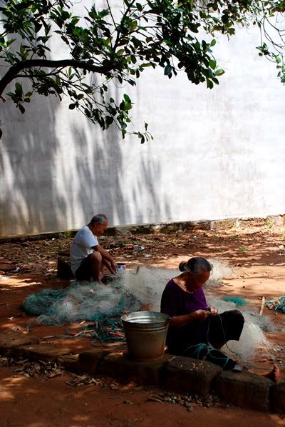 我们住的渔家乐旁,有一对老头老太太,仿佛永远在那里补呀补渔网,我睡觉的吊床就在一旁,我好几次醒来,他们永远在那里!有时候,催眠曲亦无声。