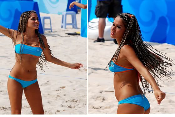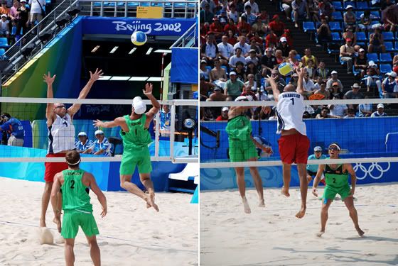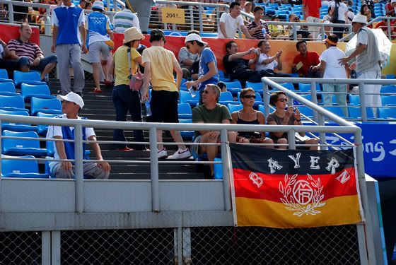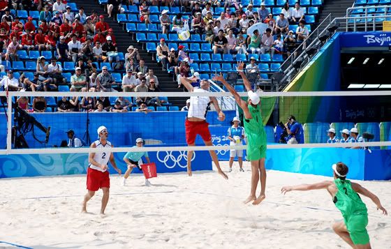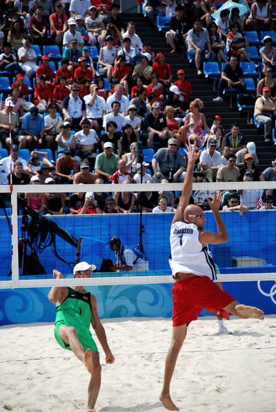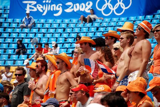 今天上午,我的奥运大餐开始啦,先是看了男子沙滩排球四分之一的比赛。因为没有中国队员进入八强,因此现场气氛一片欢快轻松。现场的劲爆音乐,养眼的沙滩宝贝,精彩的扣杀与鱼跃救球,荷兰观众的精彩表演,不断掀起的人浪......让人忘记了这是一场事关重要的比赛,而仿佛是一场巨大的PARTY,一场欢乐的SHOW场。