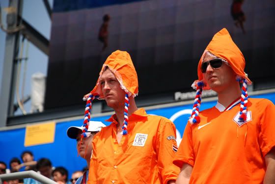 第二场比赛是荷兰与格鲁吉亚,荷兰的观众太专业了,歌声,鼓掌,喝彩,行头,风头简直盖过了场上的比赛。虽然荷兰最终输了比赛,但他们一样轻松愉悦。