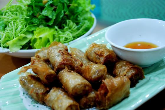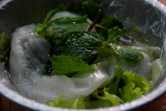 后来,我们又在一家苍蝇馆子吃了第二次越南卷粉,真叫一个惊为天人呀,爽滑的外衣,里面包裹着鲜肉,虾,木耳等东东,配上香香的薄荷叶子,连那口汤也是妙不可言。可是可是,为了空着肚子吃以后的系列美食,我只吃了五条