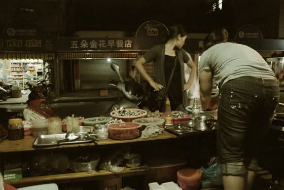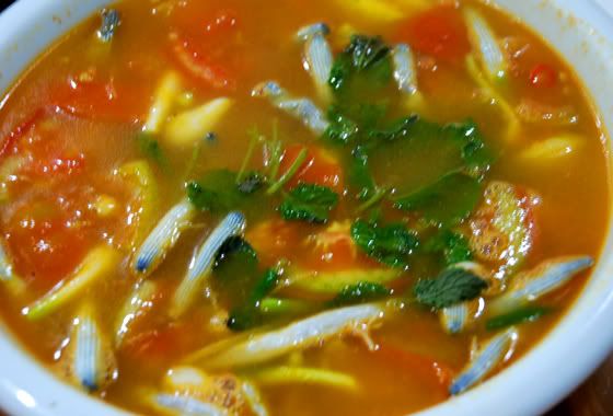 这是酸辣汤,这个汤的关键是其中的一种叫做泥丁的可怕的小虫子,如上图,白白的,特别象我小时候养的蚕宝宝,这样的一个肥肥的、白白的、缓缓蠕动的虫子,居然要放进嘴里