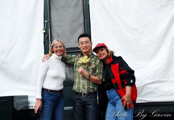 在我鬼鬼祟祟的拍照之际,门突然开了,两位美国老妞儿火热地向我扑过来,得知我来自北京,她们俩立刻HIGH起来,语无伦次的、用词极其华丽的表达了对奥运开幕式的赞叹。她们俩的职业是教师,左边是理性的数学教师,右边的红衣是感性的语文教师,她非要赠予我她今年捡到的第一枚枫叶