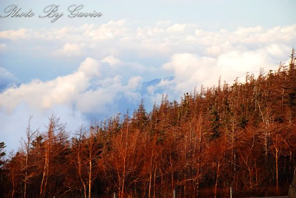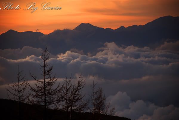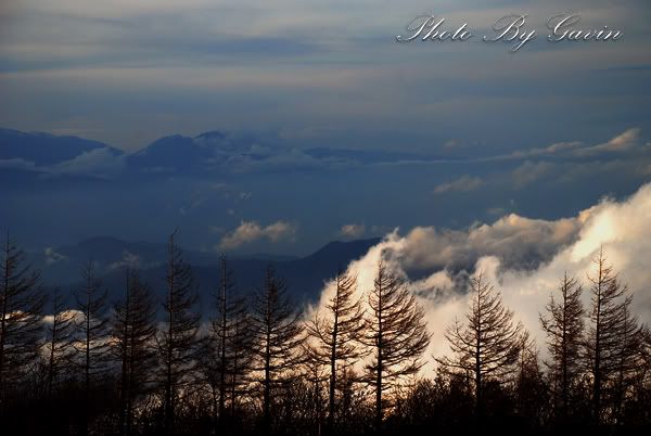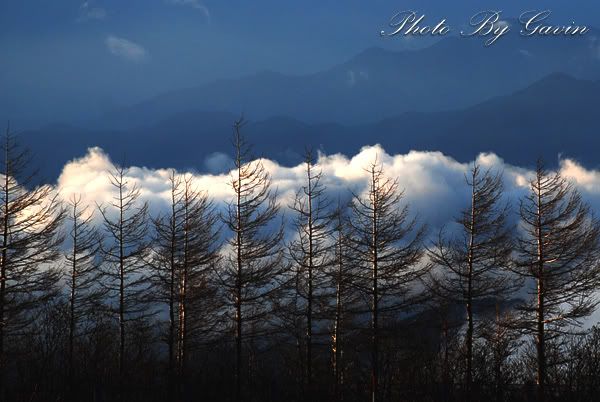 深秋的富山士,清冽的气息;黑色的松树;黄色红色的叶子们;奔流的清泉,高高的雪线,不多的游人,让我深为陶醉在那种日本独有的山间气息中。最让我着迷的,是那或远或近,或浓或淡的云,它们有的形单影只,有的汇合成云海,与树尖儿相伴,相映成趣。而斜阳夕照时,云们都披上橘色的霞装,那一刻的景象,很梦幻,很日本卡通场景,很让人温暖。