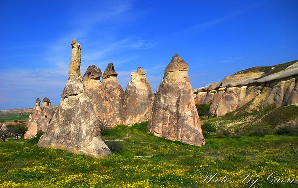 而土尔耳满山满野的黄色野花,确让我叹为观止了,雏菊为首的黄色小野花,就那样不事张扬,却极具规模的铺满一地,这样的野花,也铺陈在卡帕多细亚的石林之间,让眼前的景致,又多了一份柔情。
