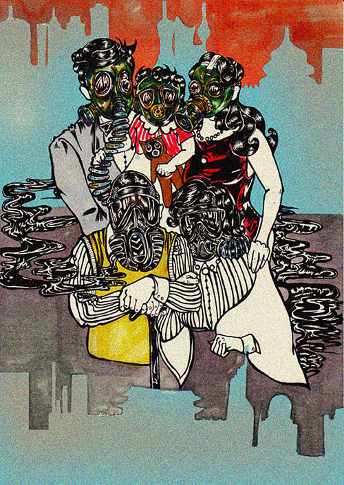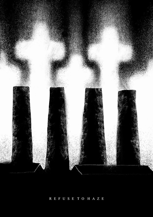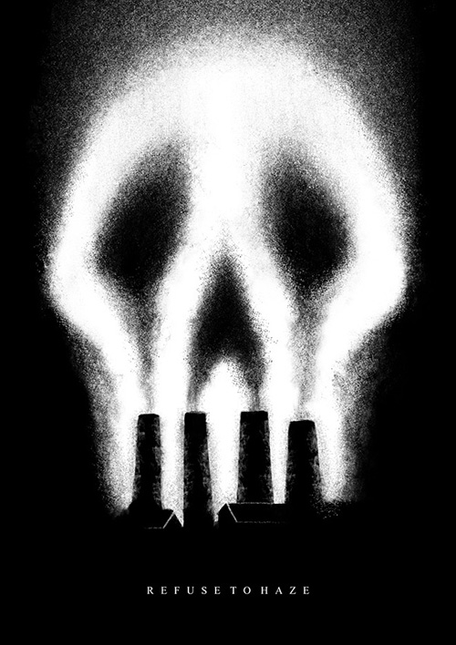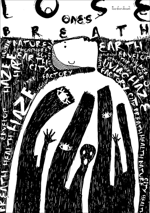 蔡仕伟:提醒公众从意识上对雾霾进行思考、反省,这是具有教育意义的作品,加之作者以强烈色彩与简练、双关的图形语言,很好地强调了这一观点,是清晰表达主题且又能赋予观者正确思考的佳作。