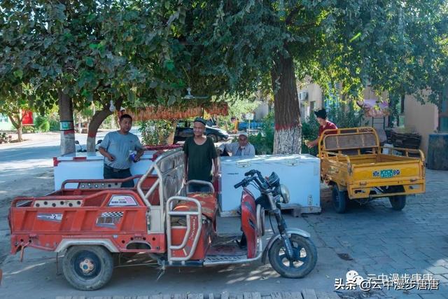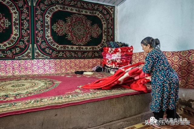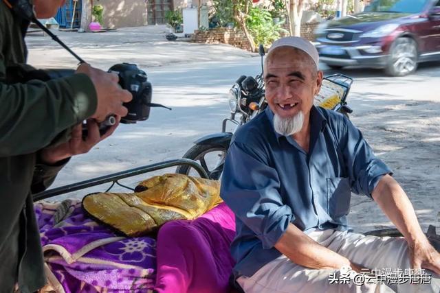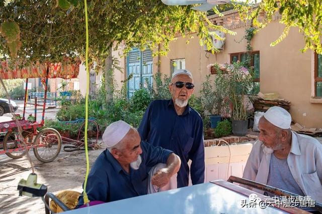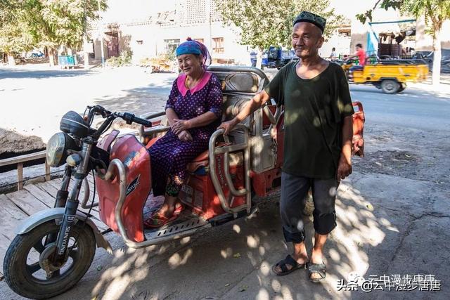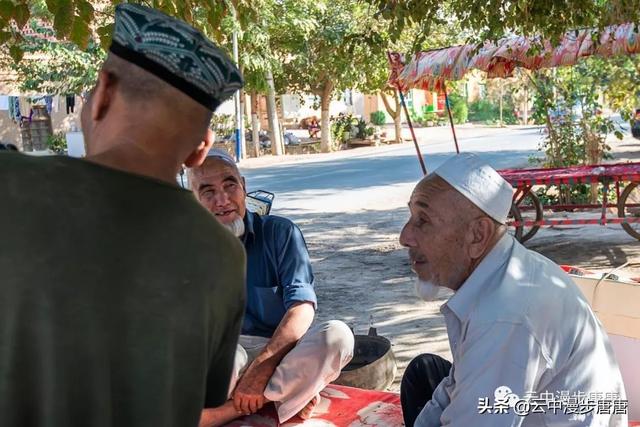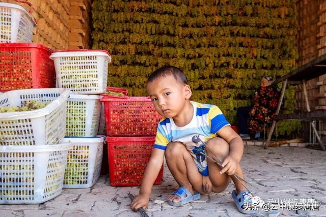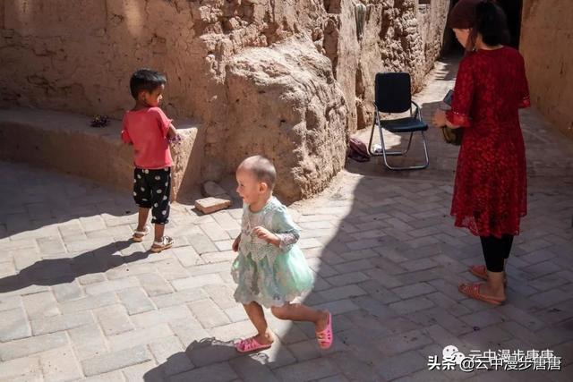 潺潺的溪水自北向南流淌,润泽着这个古村落。村子里安静之极,几个老年人在家门口摆着新疆特产,并不吆喝顾自打盹。麻扎旁的晾干房里,一家维吾尔老小正忙碌着挂架、分捡、装筐,光屁屁小小孩儿顾自玩着。桥头艾克曼古丽家,维吾尔族大妈热情好客,本来只是想上她家楼顶拍两张照片,大妈又是是哈密瓜、又是葡萄干、杏干、无花果干,飘香的茶,甚至还挟来一个包子一定要我吃,生怕我饿着了……尽管语言不通,她说的我听不懂,我说的她也似懂非懂,俩人相视而笑,你也比划我也比划,竟然没觉得有什么沟通上的障碍。想想在新疆的日子里,草原帐篷里游牧民哈萨克人献上的酥油茶,还有乌孙草原上摩托车小伙阿斯尕尔驮着我去看马,清晨里八卦城一定要给我一个拥抱的维吾尔奶奶,哎,新疆,热情、好人真多!