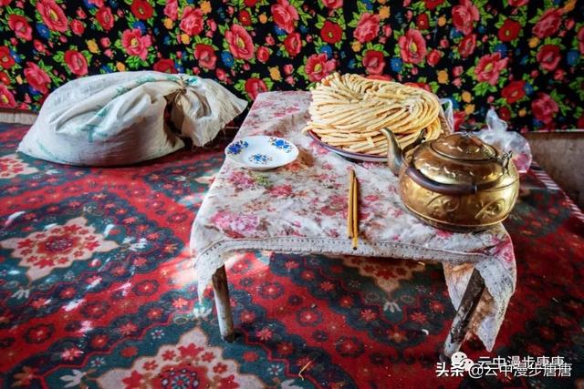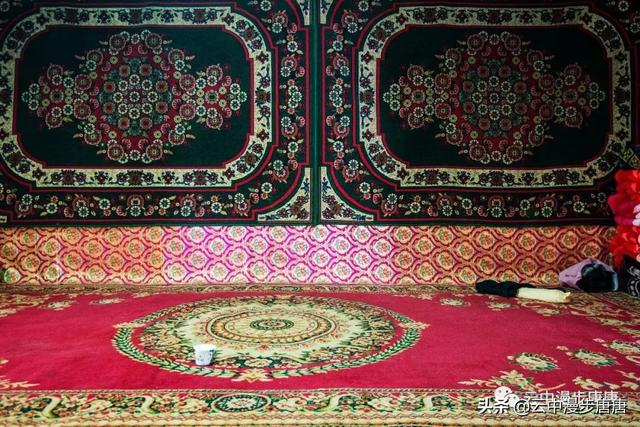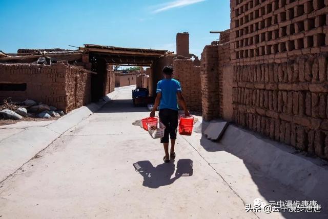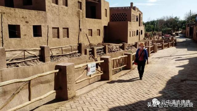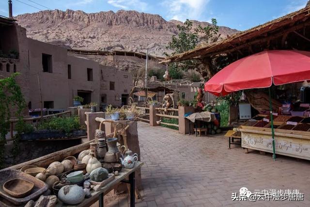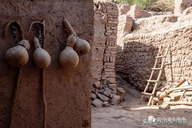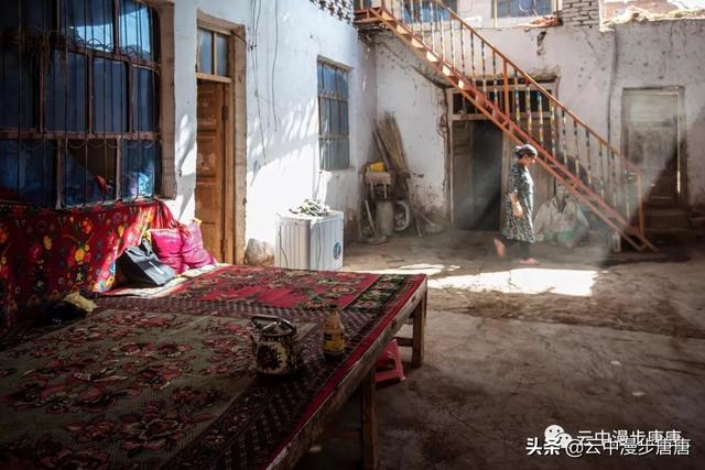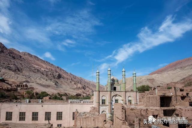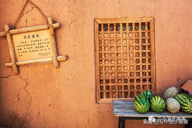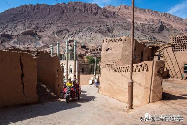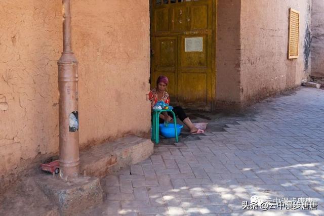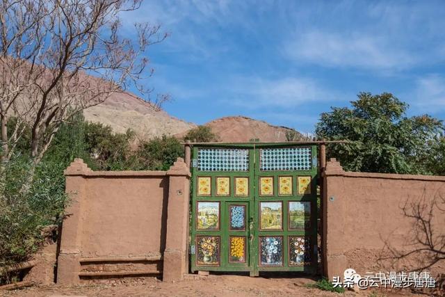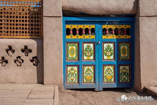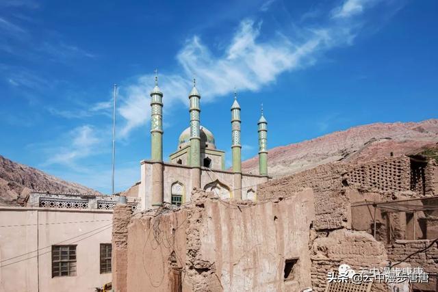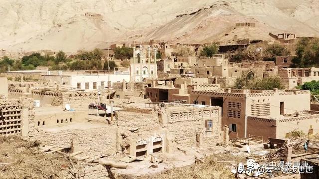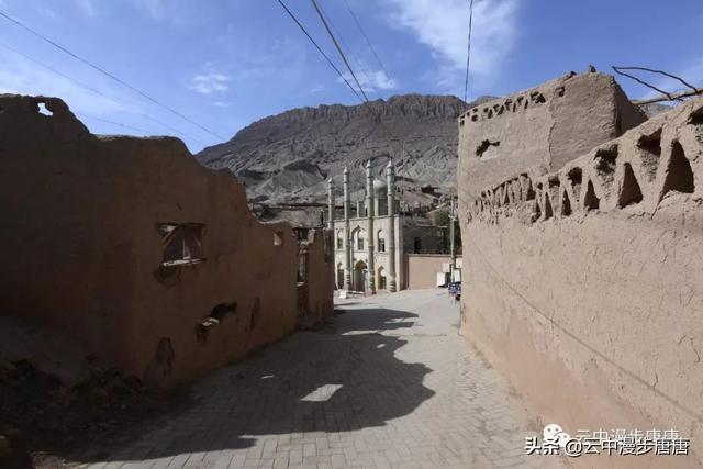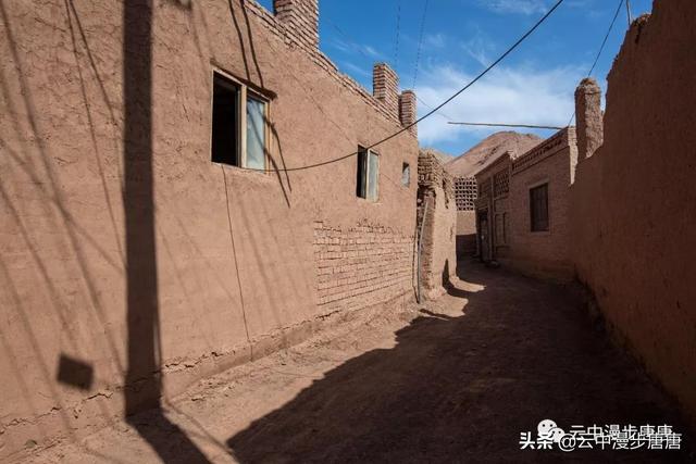 吐峪沟在火焰山下静静的守护,尘土腾烟,土墙房一溜枯黄,走在村子的巷弄里,那些残破的断墙、积灰的窗,无不沾满远去的时光,阳光洒在土墙上,光的衍射下,那房那墙充盈了落寞、古朴与苍凉!村中清真寺在大片生土建筑中醒目的矗立,那一抹绿将整个村子与大地统一的土黄色调打破,迎面而来的维吾尔大妈艳丽的头巾与服饰,还有民居里那些色彩丰富的壁毯、餐盘,又似一团热情的火焰,仿佛要将这片寂静的土地点燃。黄土漫漫、大地苍茫,这个存世千年的古老村庄,还将继续于岁月的尘烟里浮浮沉沉。