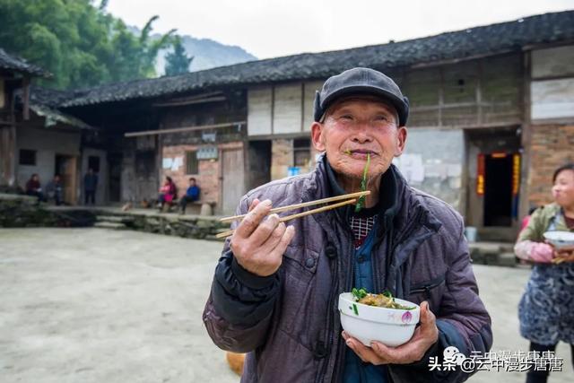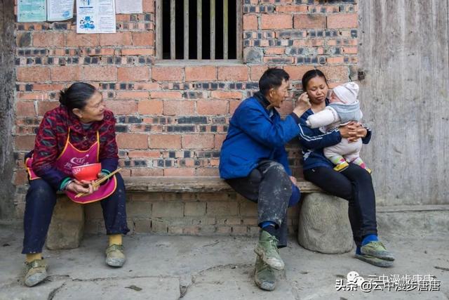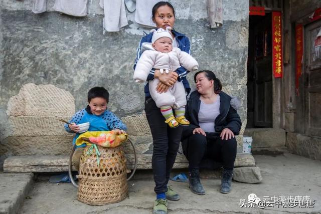 凉桥的吴家院子老老小小到是不少在家,晌午时分,三三两两的端着碗倚墙长凳上坐着吃饭,孩子们端着碗边吃还边跑着,狗狗没套链子,院坝里晒着太阳。年纪最大的已92岁,最小的还在背篓里坐着,几世同堂的老院子,那种亲热与和谐的氛围就像上世纪七十年代的农家大院。
