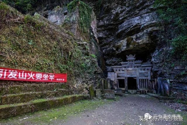 离开汤巴丘时去了就近的老龙洞,老龙洞位于邻水三古乡,属于喀斯特地貌天然石灰岩溶洞。老龙洞有双牌坊,洞口斑驳荫蔽的牌坊字迹风化模糊,“泽润众生”到是清晰可见,左右联“用汝作霖雨故称龙焉