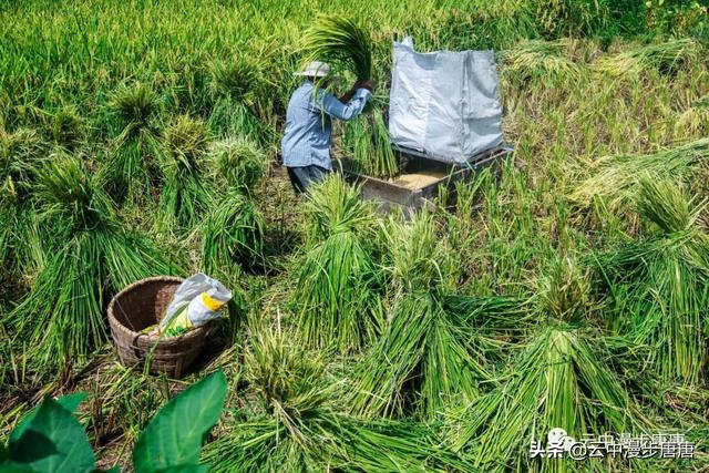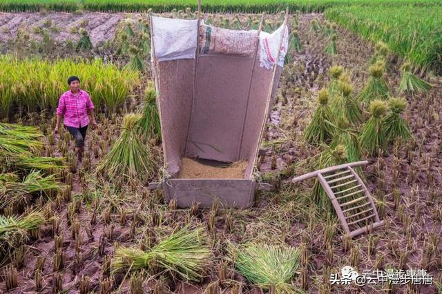 晨曦里彩霞漫天,绚丽多彩的霞光映射,铺天盖地洒向秋天的田野,稻穗飘香,一串串、一行行,沉甸甸的,坠弯了腰,风拂之下翻卷起金色的浪。收割机能去到的地方,机声隆隆,层层叠叠翻卷着躺下;收割机去不了的地方挥镰手割,谷把子排列得一排排一行行。草帽遮阳,汗巾挂在肩上,一把把谷穗喂进打谷机,粒粒稻谷飞舞,饱满金黄;那些边边角角的田里,还能看见传统的拌桶打谷,扬起的谷把子一下下摔挞在谷架子上,每次重重的摔挞后,又分开轻轻抖两下,如此重复两三次,那粒粒稻谷全进了拌桶内,没点儿技术估计稻谷要么打不干净要不飞到桶外去了,手割手打最是能感受到“汗滴禾下土、粒粒皆辛苦”。倒下的谷草一把把弯腰锁好,堆叠码放谷草成垛成行,稻谷盛满一个个口袋,一包包、一车车,担着挑着驮着运回家去,院坝里、公路旁,摊开晒满,更有有心人摊开的谷粒好似一朵盛开的花。如此灿烂的季节、收获的季节,农民们在晾晒浓浓金秋时描绘出一幅幅农家田园艺术,美!