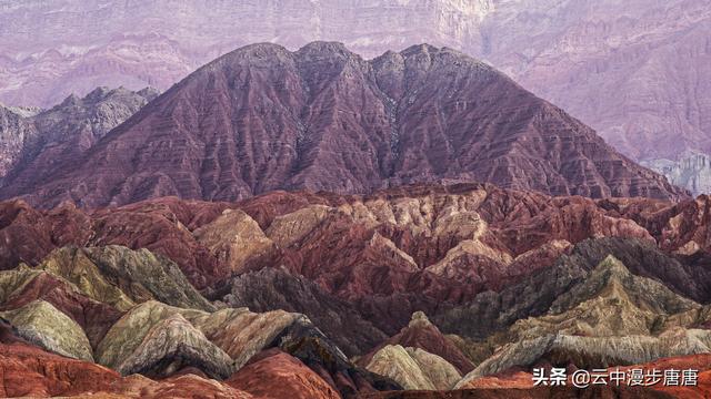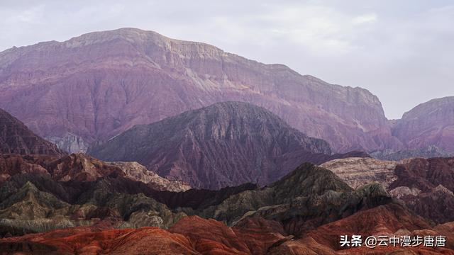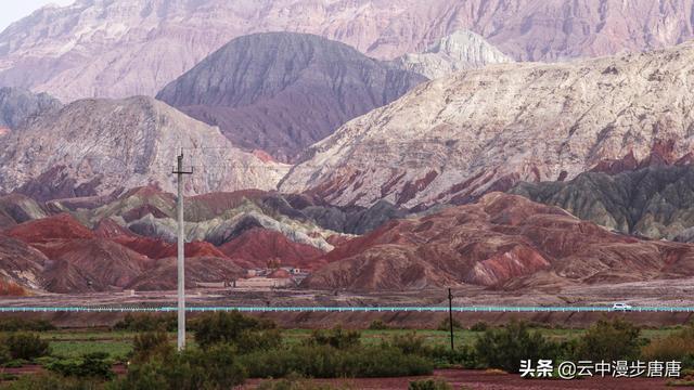 从喀什到阿克苏的路途中就是最好的例证,因起早犯困迷迷糊糊就睡着了,当主驾把我从梦中叫醒时,我完全被窗外的景致震撼到了,有些蒙有些不知身处何处,甚至忘记拿起相机去拍!那是红、是绿、是褐、是黑……交织在一起构成的五彩斑斓、色调浓郁巨幅油画,是连绵起伏勾勒深深的地表画廊,那是伽师县境的奇彩大道,是绵延数十公的西克尔七彩丹霞。