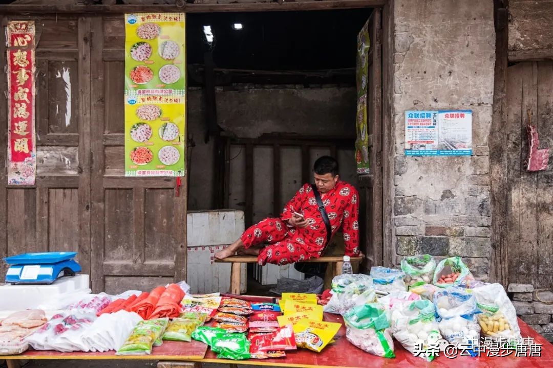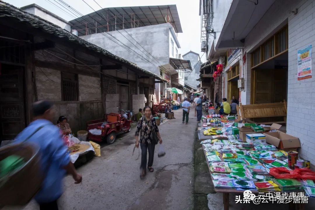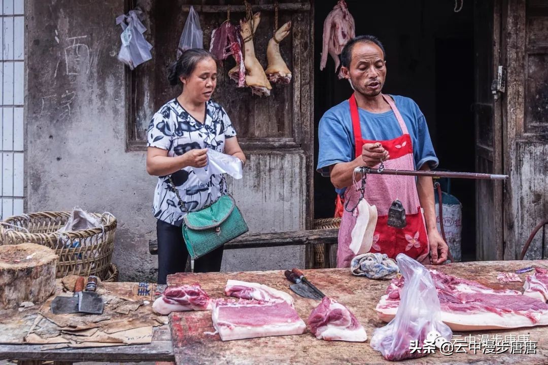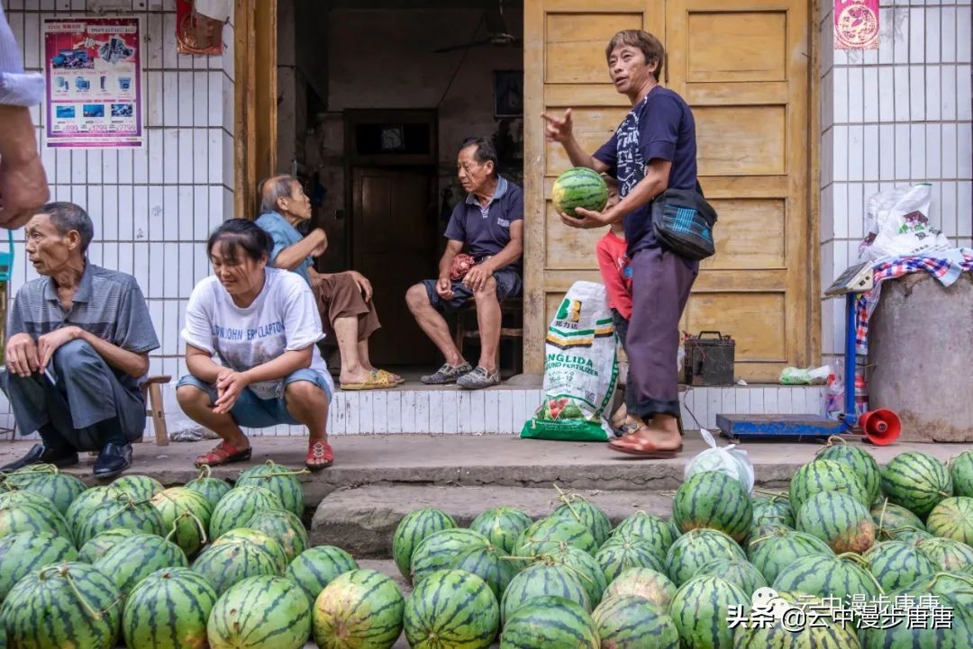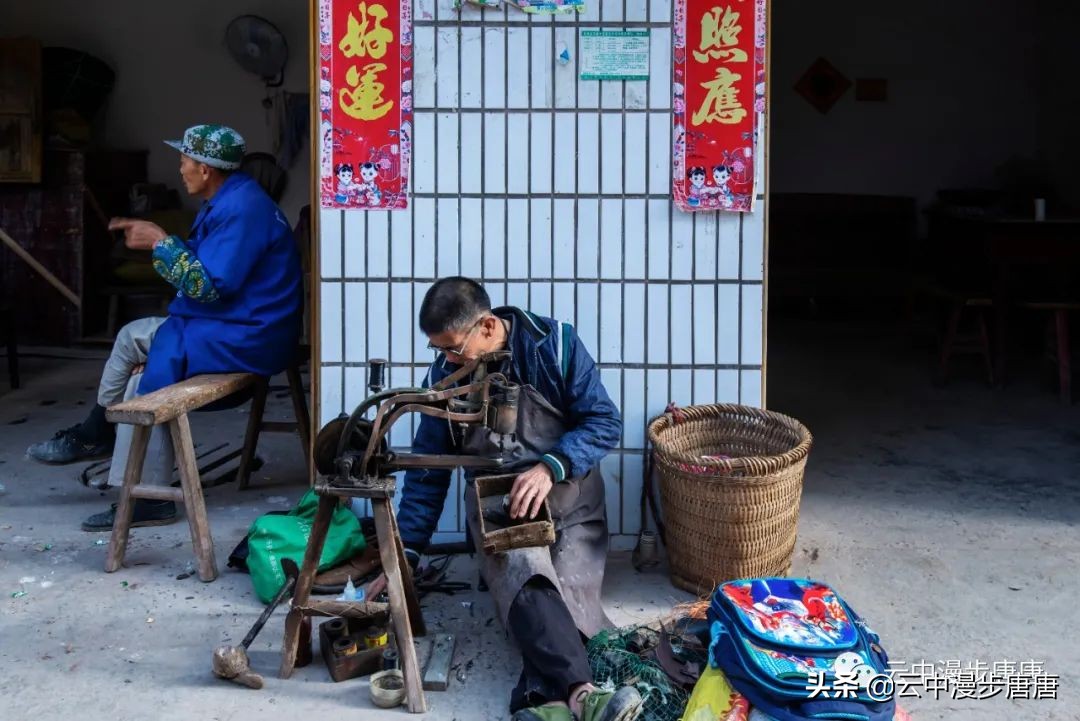 那个腰背挺直让我拍照的理发人还在老地方摆着摊,只是,背却佝偻,两年时间,这要理多少人的头发才会佝偻成那样;那个卖猪肉的小鲜肉也变了模样,胖了,都不敢确认还是不是他;江边码头的缺嘴凉粉已不在,据说回到烈面老家不再赶转场卖凉粉,也该歇歇了,毕竟是九十多岁的高龄老人;江边的新旧两座桥依旧并立,旧桥上寂寂,新桥上车来人往;裁缝摊、打铁铺、叶子烟......熟悉、质朴、浓郁的乡土气息弥漫依旧。