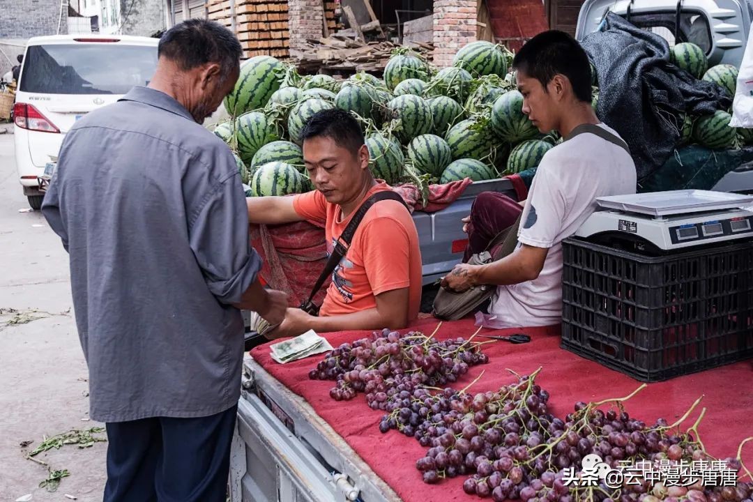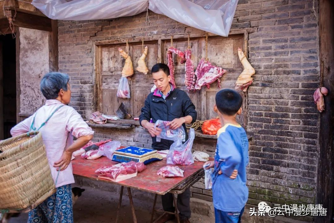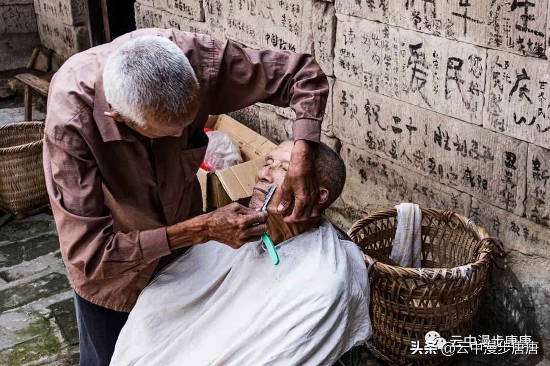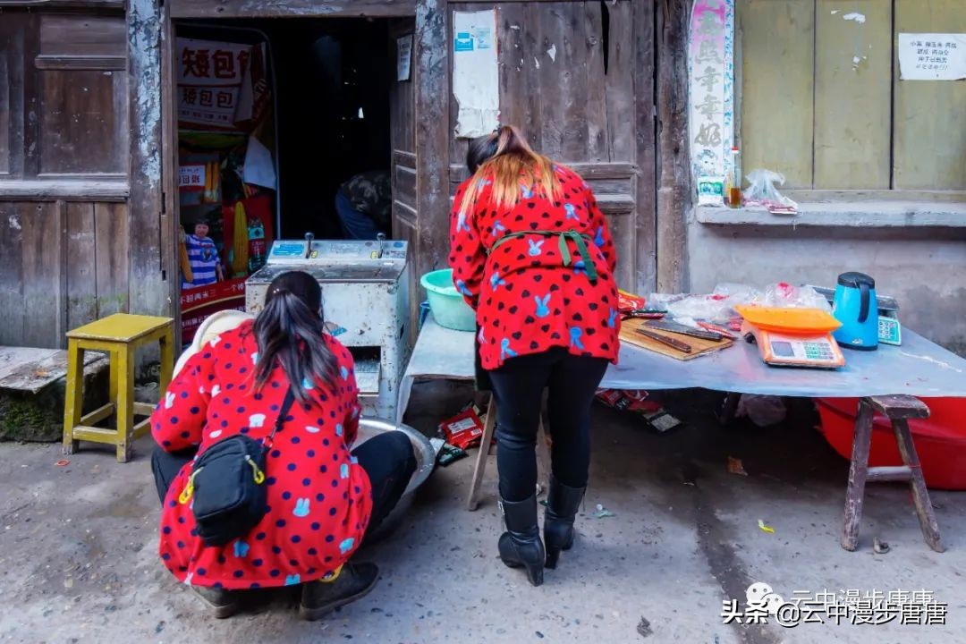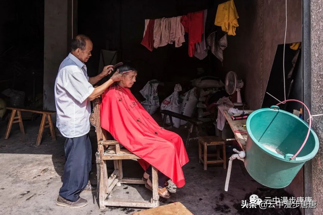 那个腰背挺直让我拍照的理发人还在老地方摆着摊,只是,背却佝偻,两年时间,这要理多少人的头发才会佝偻成那样;那个卖猪肉的小鲜肉也变了模样,胖了,都不敢确认还是不是他;江边码头的缺嘴凉粉已不在,据说回到烈面老家不再赶转场卖凉粉,也该歇歇了,毕竟是九十多岁的高龄老人;江边的新旧两座桥依旧并立,旧桥上寂寂,新桥上车来人往;裁缝摊、打铁铺、叶子烟......熟悉、质朴、浓郁的乡土气息弥漫依旧。