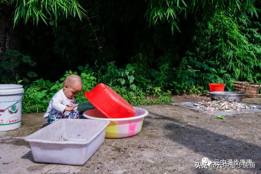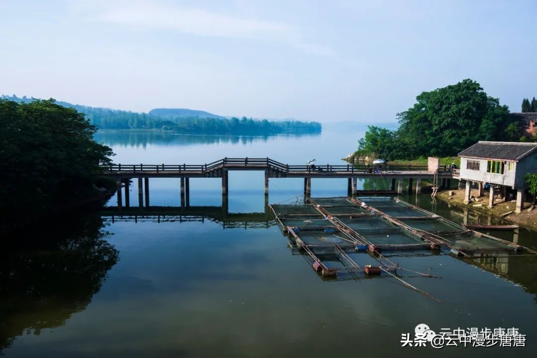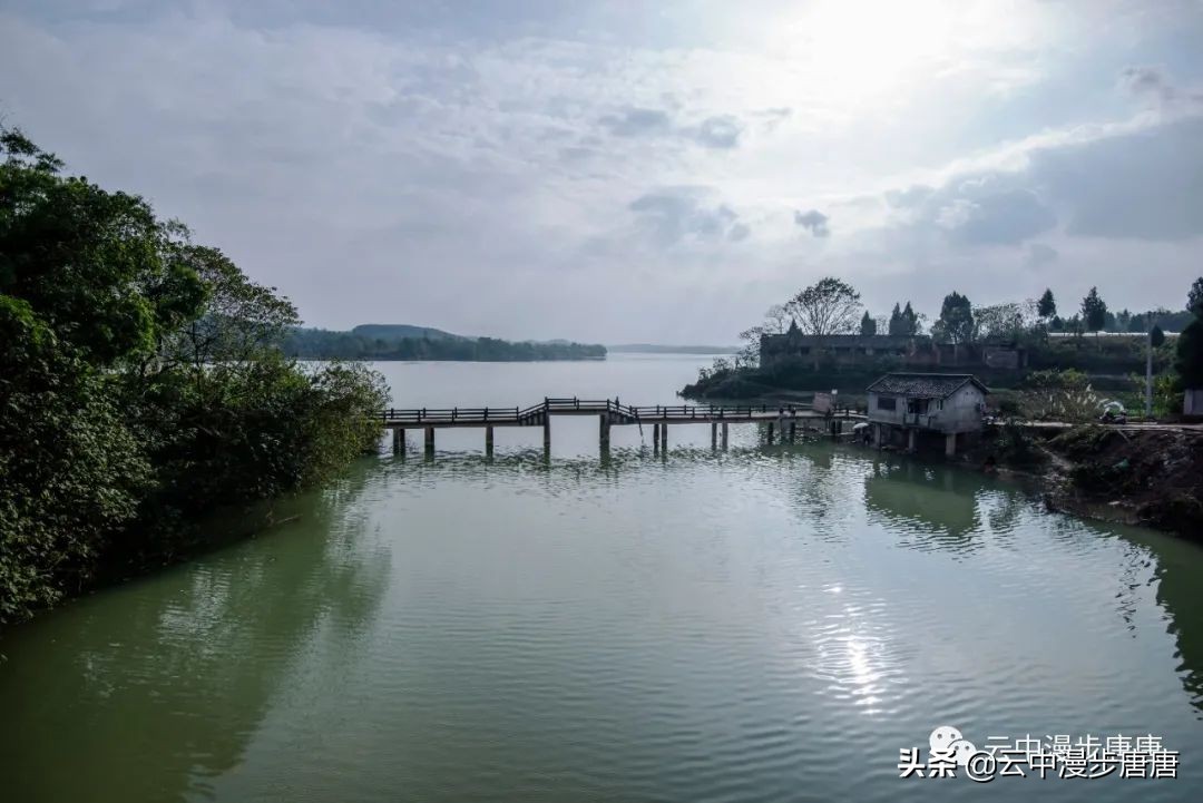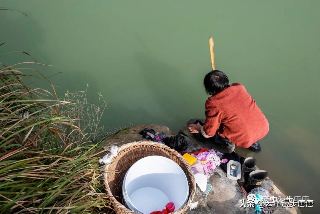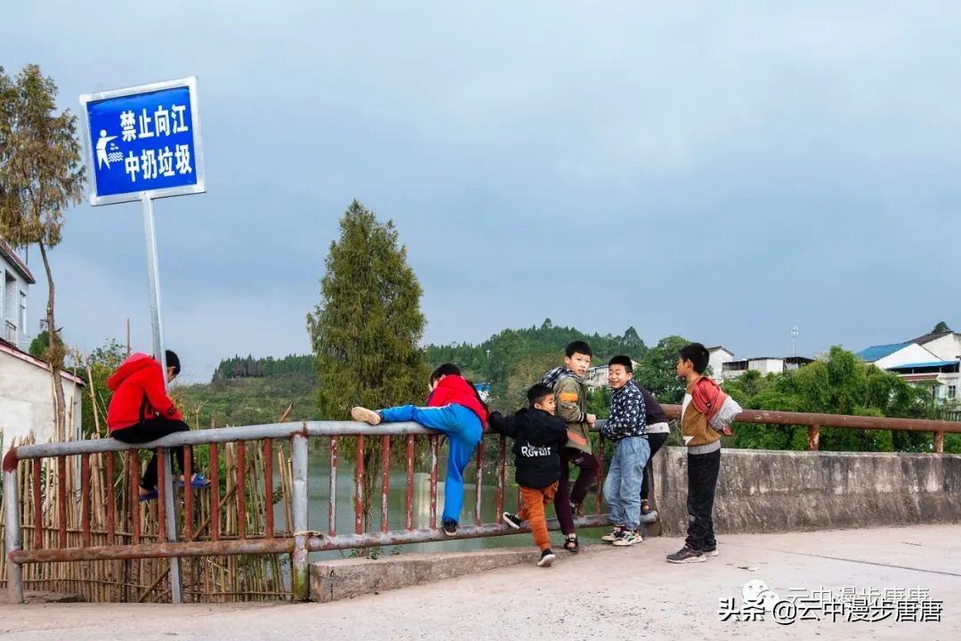 码头不见摆渡人,也不见轮渡的影子,桥上钓鱼三两者悠闲聊度时光。江水倒是清清洌洌干干净净的,浅淡的阳光下碧水青天,竟然有点儿乡村马尔代夫的小感觉,这得归功于环境治理,前几次来江边江水可没这么澄澈一片。顽童在桥头嬉戏,村妇在江边洗衣,木锤敲击出梆梆的洗衣声,江面鳞鳞波光,攥不住的岁月,留不住的过往,唯见“日暮嘉陵江水东,梨花万片逐江风。江花何处最肠断,半落江流半在空(唐.元稹)”。