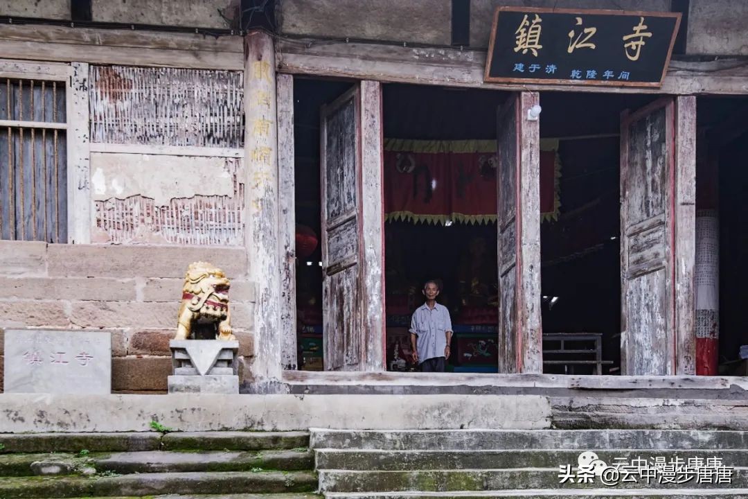 镇江寺大门紧闭,右侧面什么时候砌起了一堵墙,那些破旧不堪掩于墙体之外,掩去的还有镇江寺曾经的风风光光,王爷殿、魁星楼、罗汉殿、观音堂......韦驮护法观音普渡众生,镇江寺里的各路众神系念着歹溪百姓曾经多少祈愿。时过境迁,老庙颓败,那曾经的繁华喧嚣都停滞在老辈人的回忆里,盛极一时的戏楼、赛诗会、袍哥时代.......已成茶馆里极少喝茶老人嘴里的稀缺谈资。