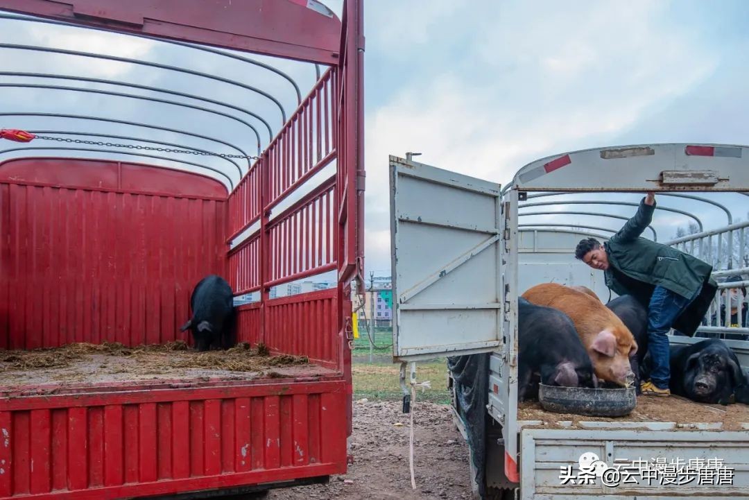 次日,晨曦里轻雾缭绕,小村子在轻烟薄雾中如梦似幻,背倚的高山若海市蜃楼般若隐若现。昭觉城外,彝家人在忙着买卖猪,交易好就驮着拉着肥猪往家赶,他们要在这一天赶回家杀猪过年。我们在地莫乡,恰遇一整条街都在杀猪,沿街家家门口都是,猪横遍野,干蕨芨草在燃烧,火红红旺旺,燎得猪皮吱吱响。
