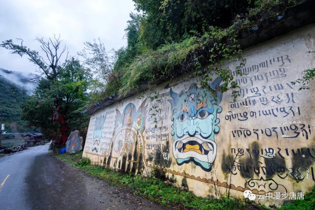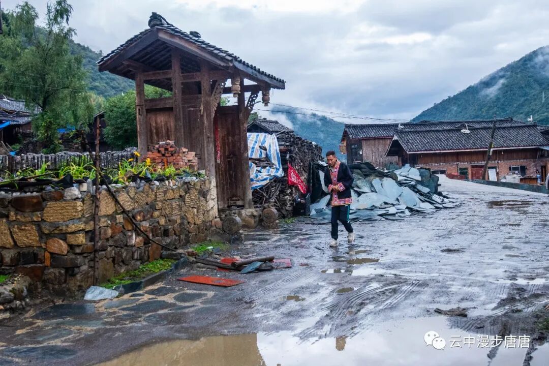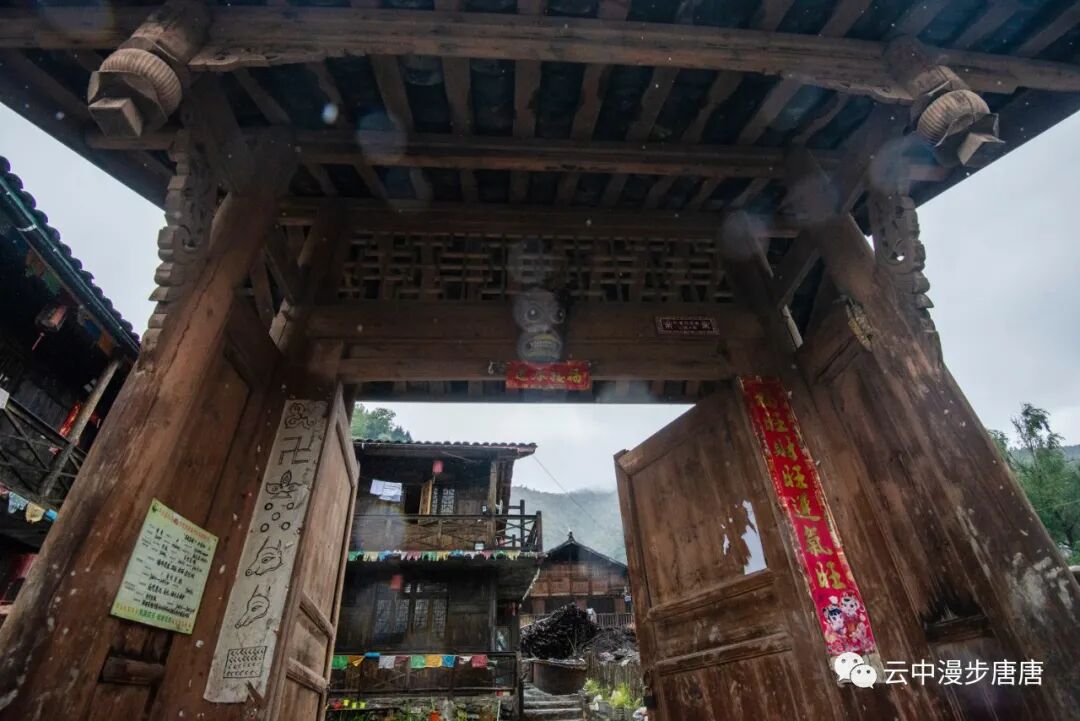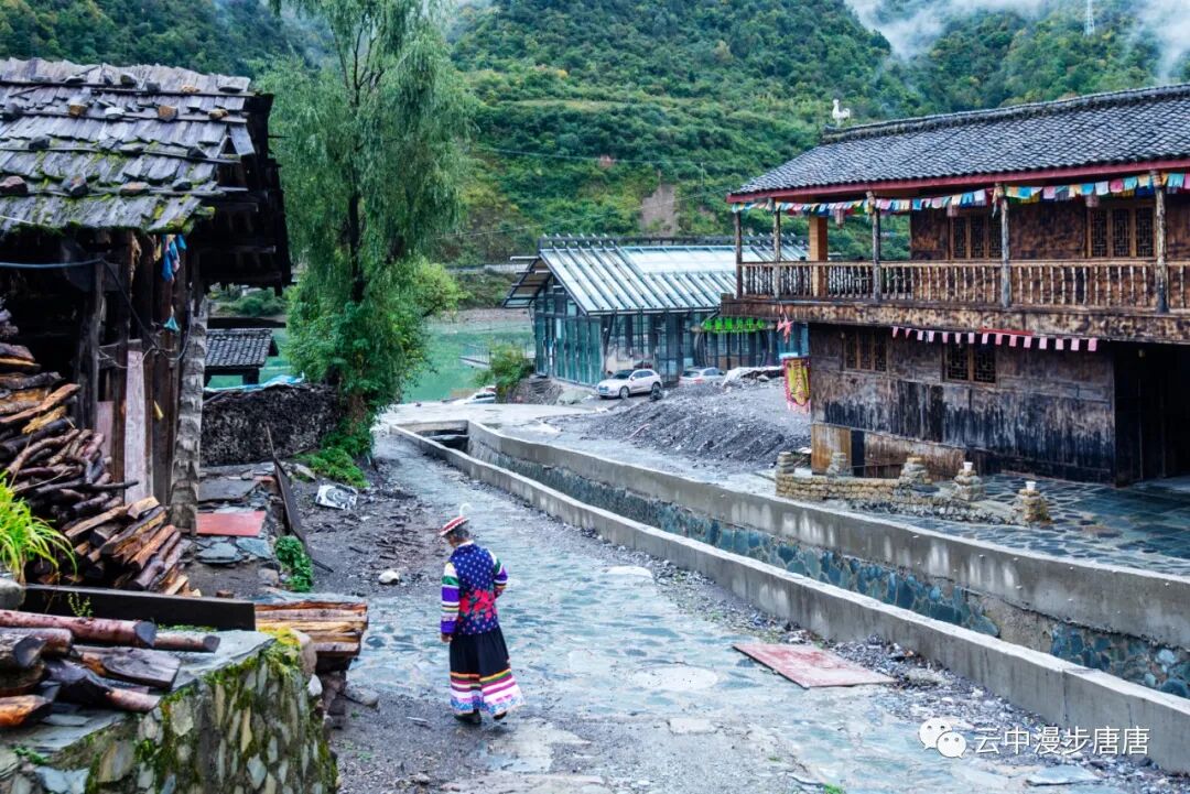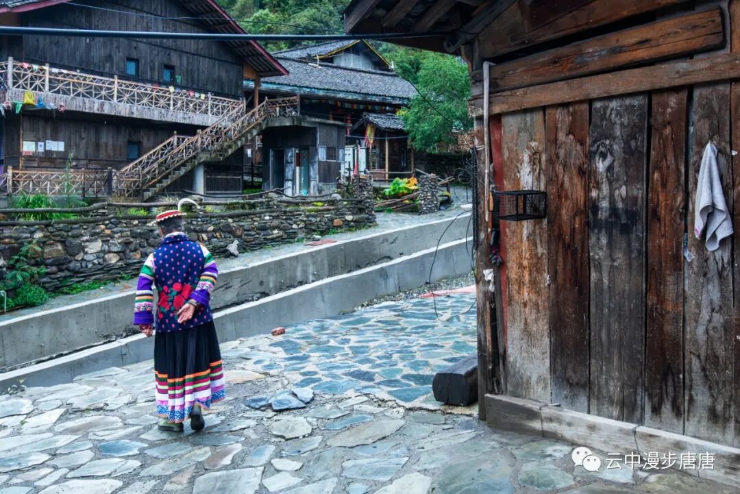 白马人没有自己的文字,他们的语言也与其他地区的藏语有区别,在村子里,与之交流都是汉语,他们与家人交流也是汉藏语系混合来。随着时代的发展,年轻一代的白马藏人更多的是学习汉语,一个没有文字的语系——白马藏语已面临濒危。再就是白马藏衣,村子里看到的他们基本上都不穿藏衣,除了两三个老年人穿着他们艳丽的民族服饰,大多人都着汉人服饰,走在村子里,甚至分不出哪些是游客哪些是原著民。其实,扒昔加古寨已不像原生的古寨了,旅游业让整个村子里来来去去的都是游客,游客也是来去匆匆,毕竟,整个扒昔加古寨也没多大,又恰逢下雨,村子里更是人迹寥寥。