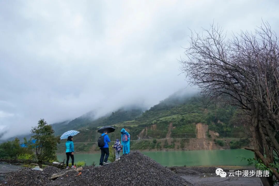 天母湖观景台是在一隧道口,未曾想因前年的地震整个观景台底部已塌陷成空,别说观景了,站在旁边那小风一吹,感觉都怕把人吹落湖里,走吧,去找扒昔加古寨!