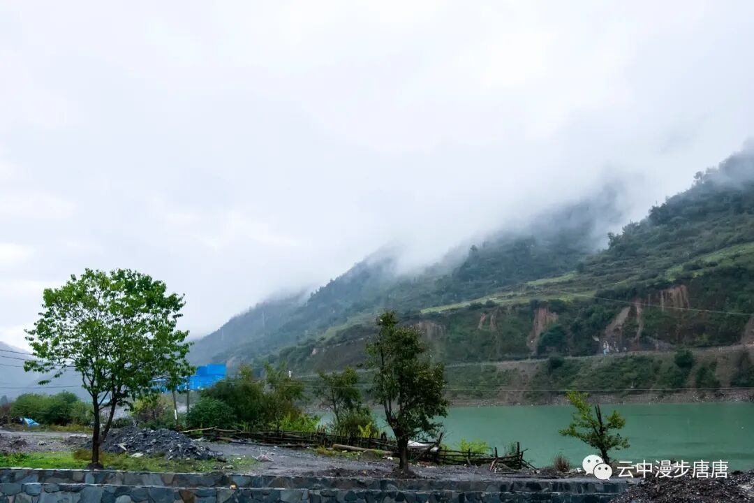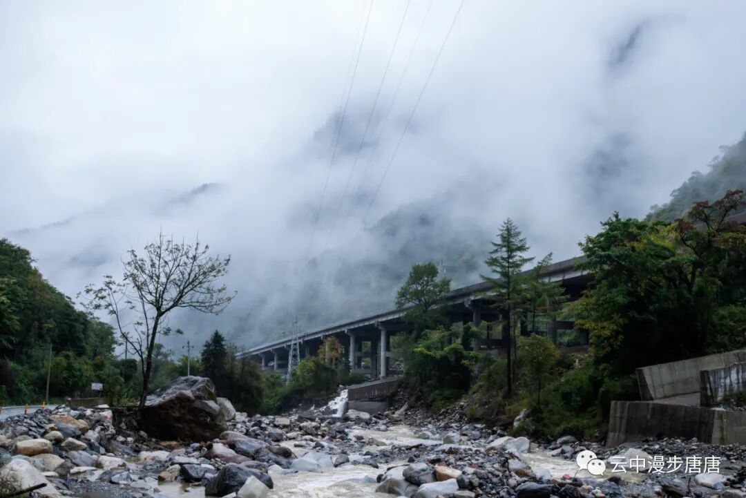 一路上导航里不停的提示“前方有落石,请谨慎驾驶”。起初只是定位了一个天母湖观景台,想着到了看看再决定后面的路,未曾想这一路导去,路破烂颠簸就不说了,九绵高速正在建设,沿途运送土方的大卡不断,弯多路急避让不开,有时跑着跑着路就只剩半边,另一半已垮塌陷进溪流,再不就是前面时不时有小石子从山体上落下,很是凶险。有一段导航盲区,竟然把我们引向了一深深峡谷,谷底看去就像是地质灾害过后形成的滑坡地带,老司机说:这导航是要导到哪去?额!