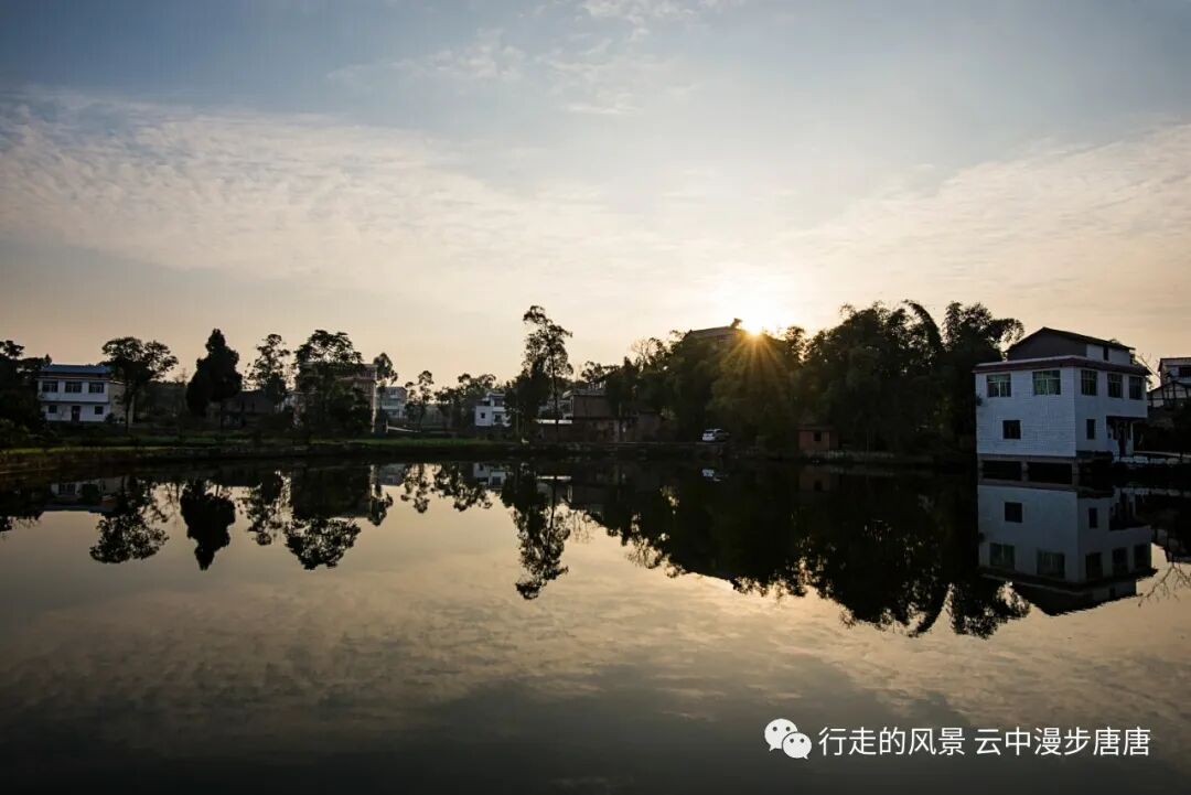 大佛寺岩上是七星照月,相传此村一地主人家郑姓儿郎看上了酉溪杨滚龙庄园家妙龄女子,托人去说亲,杨家嫌郑家家院小没看上郑家而回绝,郑家觉得很没颜面,于是大兴土木,盖房造院,还建了个大大的圆形跑马场,场地里七颗星星围成星斗映月,建好后重又去提亲亲事方成。故事里的传说真假不知,地名却是由此而生。有一年栽秧季去了那里,天干遇旱,七星照月那圆潭一池干涸泥土开裂,潭中仅剩一嵌有星星状的圆石,七颗星星照月的美景却是不见,村民们说上世纪六十年代被撬去修桥补路用了。后来的后来有机会再去时,恰遇夕阳渐隐,潭边有农妇洗衣,一池潭水轻起涟漪,农家小院竹影摇曳树影婆娑,与夕阳烟云倒映一潭,美极!