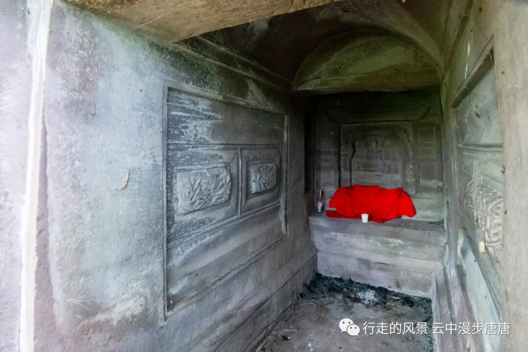 距离大佛寺一公里之外的佛保寨明灯寺(一说红灯寺)与大佛寺遥遥相望,佛堡寨明灯寺是一座占地面积约20亩的小山,寺立山顶,其三面为悬崖,在临公路旁的山崖石壁半腰,有一大一小两龛浮雕石塔,小的石塔正中刻有盘腿打坐佛像,头被毁,另一龛风化严重,宽约1米高1米有余,石塔雕刻在凹进去的石龛之内,仅剩轮廓。山上有多座崖墓,其中之一座内里左右石壁刻有祥云,顶有圆盘,最里面雕有佛灯,墓门顶端刻有“慧公和尚之塔”。经市考古专家考证,佛保寨上崖墓皆为瘗窟(和尚墓),这些多为宋元时期墓葬及石刻。