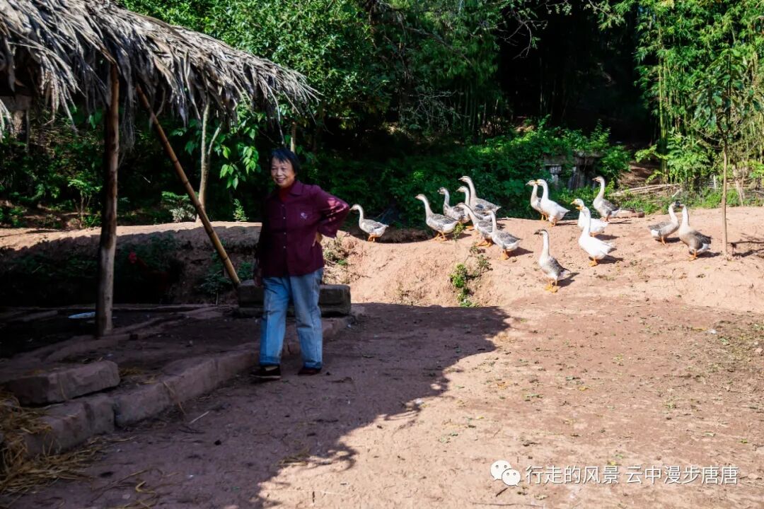 烟沙湾旁的老房石柱础形状奇特,新建的鸡棚鸽舍在蓝天下焕发生机;大梨树坎下的池塘边,柴房下,屋主人敲盆召唤鸡鸭鹅的态势俨然如司令,鸡鸭鹅“咯咯哦”“嘎嘎嘎”欢唱着奔涌而来啄食;石碾子偏置竹林一隅,常年在石碾上磨刀那一块已光滑如削;团坝村老书记家的大黄变成了小黄,奶声奶气的“嗷嗷”叫着缠在脚下;秋日的阳光穿透竹荫入院,光影斑斑驳驳。