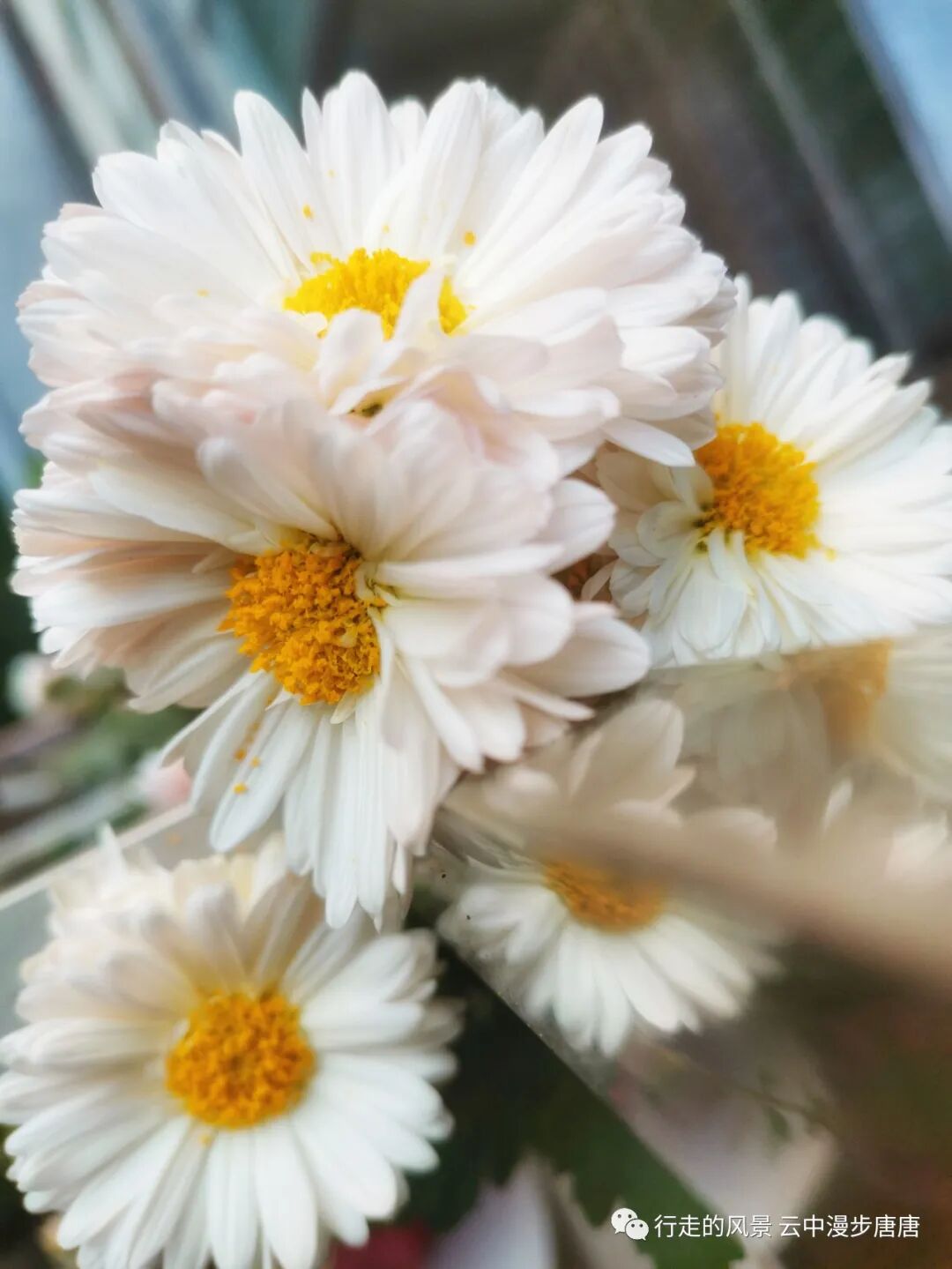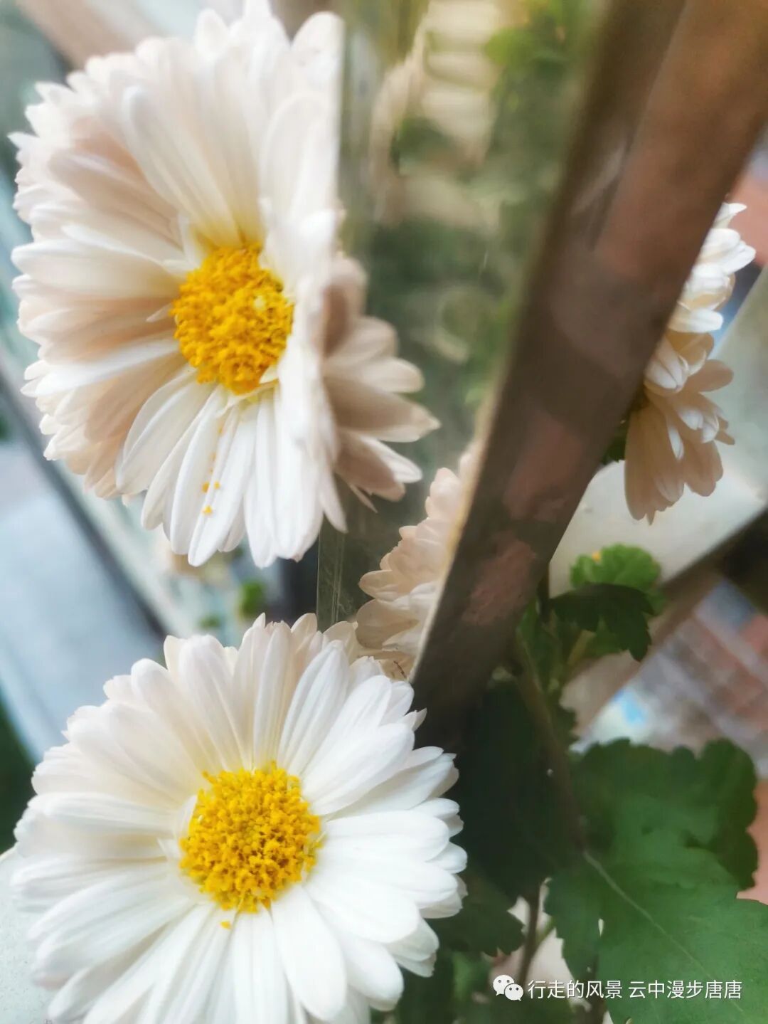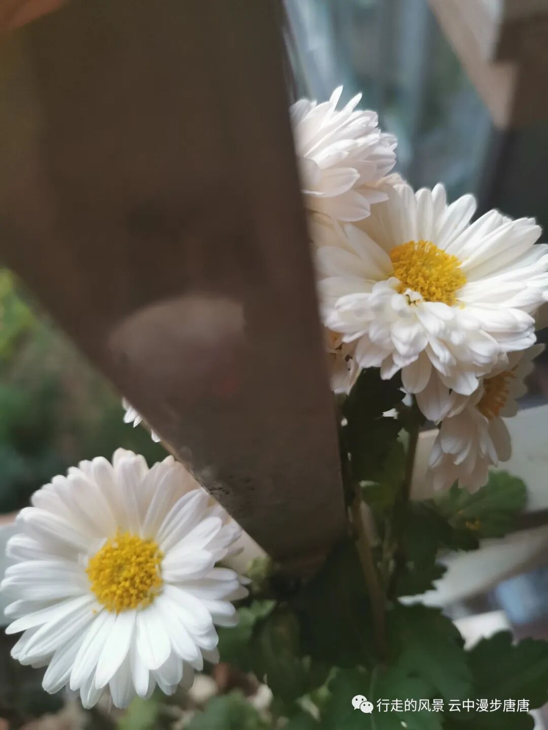 雏菊缘自一个微寒的冬日,我在秦溪高山上行走,穹顶之下苍茫大地上,它那样自由自在的独自开放,于一片荒原之上,一片枯黄之中,清雅而芬芳。那样无垠的旷野,如我一样向往苍穹向往大地向往着自由,小小一丛,它微笑着绽开着,报之以世界如歌。好生喜欢好生不舍!于是把它挖出带回家,种在我的小小厨房之外。几年来,每日看我在厨房里烹煎煮炸、烟熏火燎,它在我眼里,早晨时是清冷的,午时我若懒散它也微慵,傍晚的夕阳宠爱下它舒展着便想要奔向栅栏外的天。春天它郁郁葱葱满盆翠绿,夏季时它几窜几窜就长得老高,盛夏至秋,它时常干巴地缠在栏杆上垂首叶焦,初冬,悄不留意间它已蓓蕾满枝独自绽放。