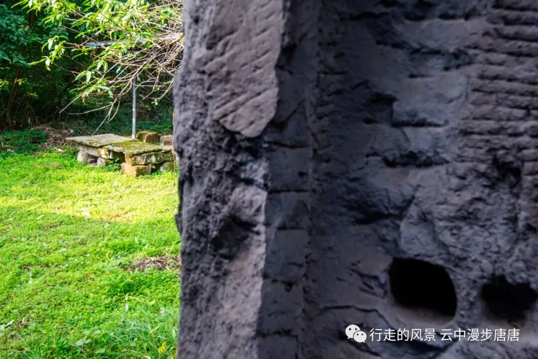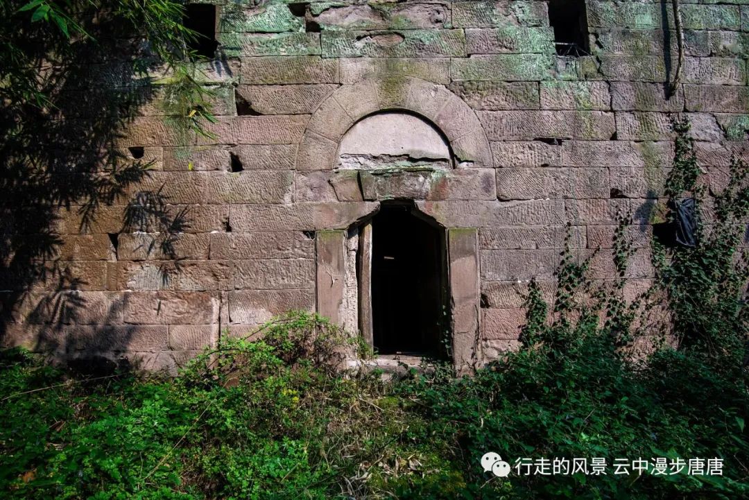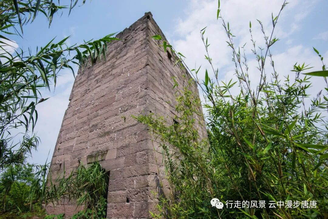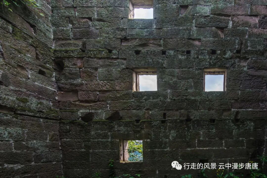 那高耸山巅的碉楼尽管已是残楼,但坚石垒砌,瞭望孔与射击孔分布于墙体,墙高十数米。碉楼内望,壁垒森严。碉楼屋顶早已不在,抬眼望去,天空也只剩一方窄小的世界,碉楼外悬崖峭壁上藤蔓疯长穿墙透壁,已快将碉楼遮蔽,碉楼石门上雕刻的“未雨绸缪”历经沧桑岁月洗礼至今。
