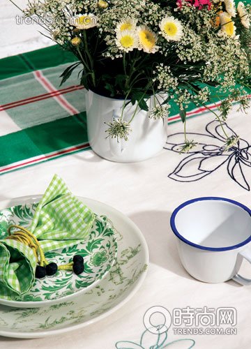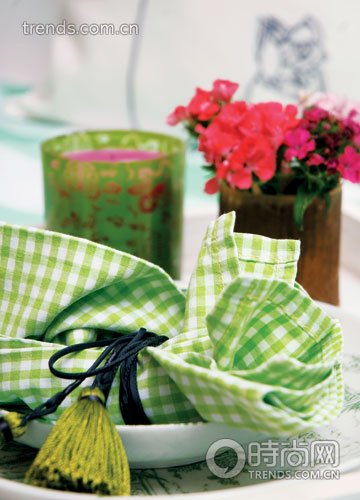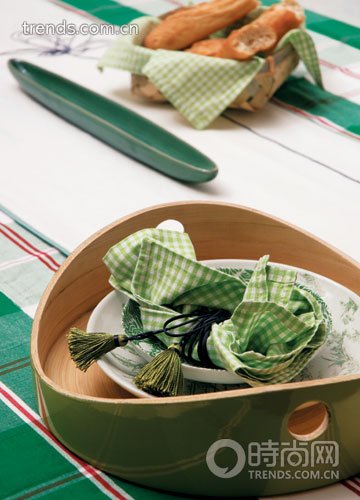 方格条纹,从来是田园气息最好的诠释,而竹制的托盘,又捧出浓浓的东方色彩。