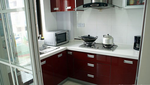 厨房在设计上摒弃了很多繁琐的部件,不仅节约了空间,在使用上也更便捷了