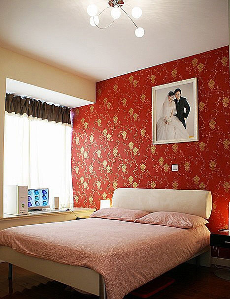 大红色的卧室背景墙,让整个空间沉静在温暖的生活享受中