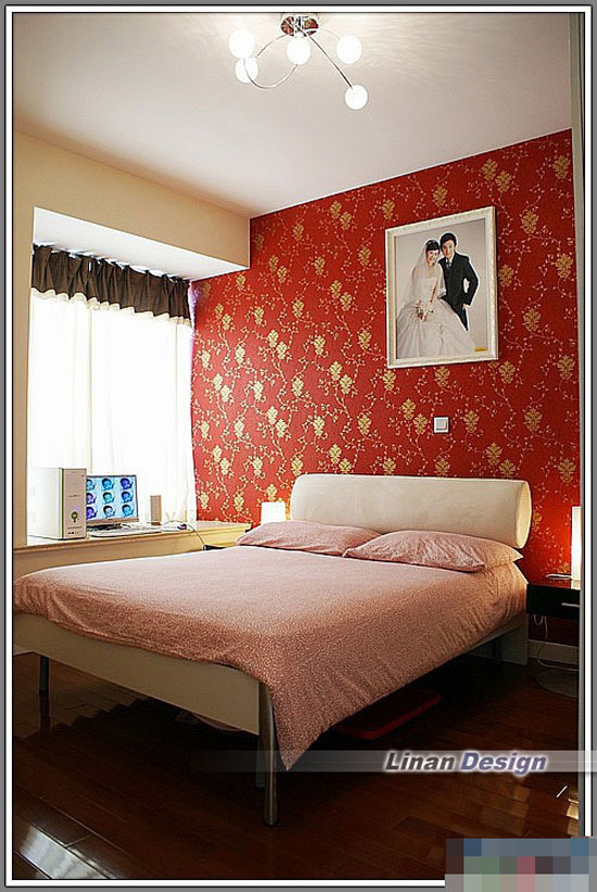 卧室 ( 单面墙用大花突出喜庆, 因为我们那时刚结婚不久, 卡卡)