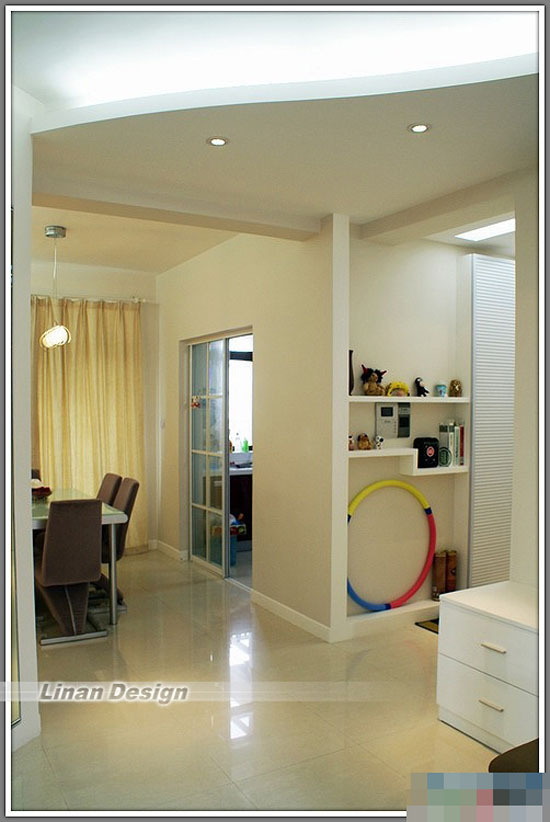 玄关进来后, 色调以白色为基础地