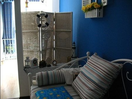 地中海风格一直诱惑着小资女的心,80后妹汁也不例外,买了这53平地老公房后,天天在琢磨这个,装好后效果还不错,最主要是只花了1万元钱。