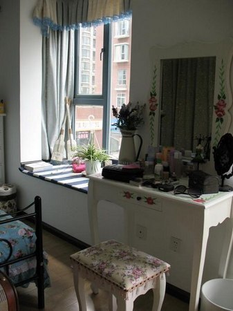梳妆台的另一边的窗户,这边的小栅栏,绿植清新环保。