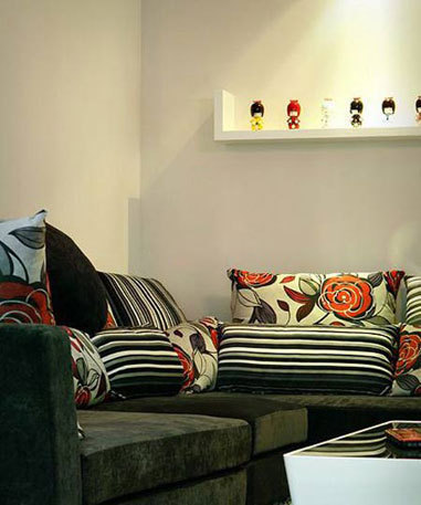 温馨一角,舒适的布艺沙发,五彩抱枕。