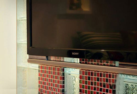 电视背景墙超级简单,靓丽的马赛克多彩搭配。