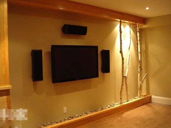 如今的室内设计,越来越多的带入自然灵感,电视背景墙以极为朴实的造型现身,却又不乏时尚气息。只需几根干树枝加上顶灯照亮,底部铺设鹅卵石,打造返璞归真的自然之感,最简单却最潮。
