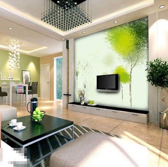 运用亮绿色的电视背景墙装饰画,很好的将古典中式与现代结合,这样的颜色让家更带有年轻感,而不难发现整个室内装饰都围绕着绿色展开,眼睛也跟着舒适起来。