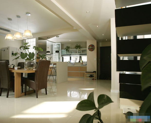 从大门进来,可以看到用玻璃门隔开的卫生间是封闭式的,其他都是开放式的。我的设计师linwei的确很厉害,开放的空间好精彩!
