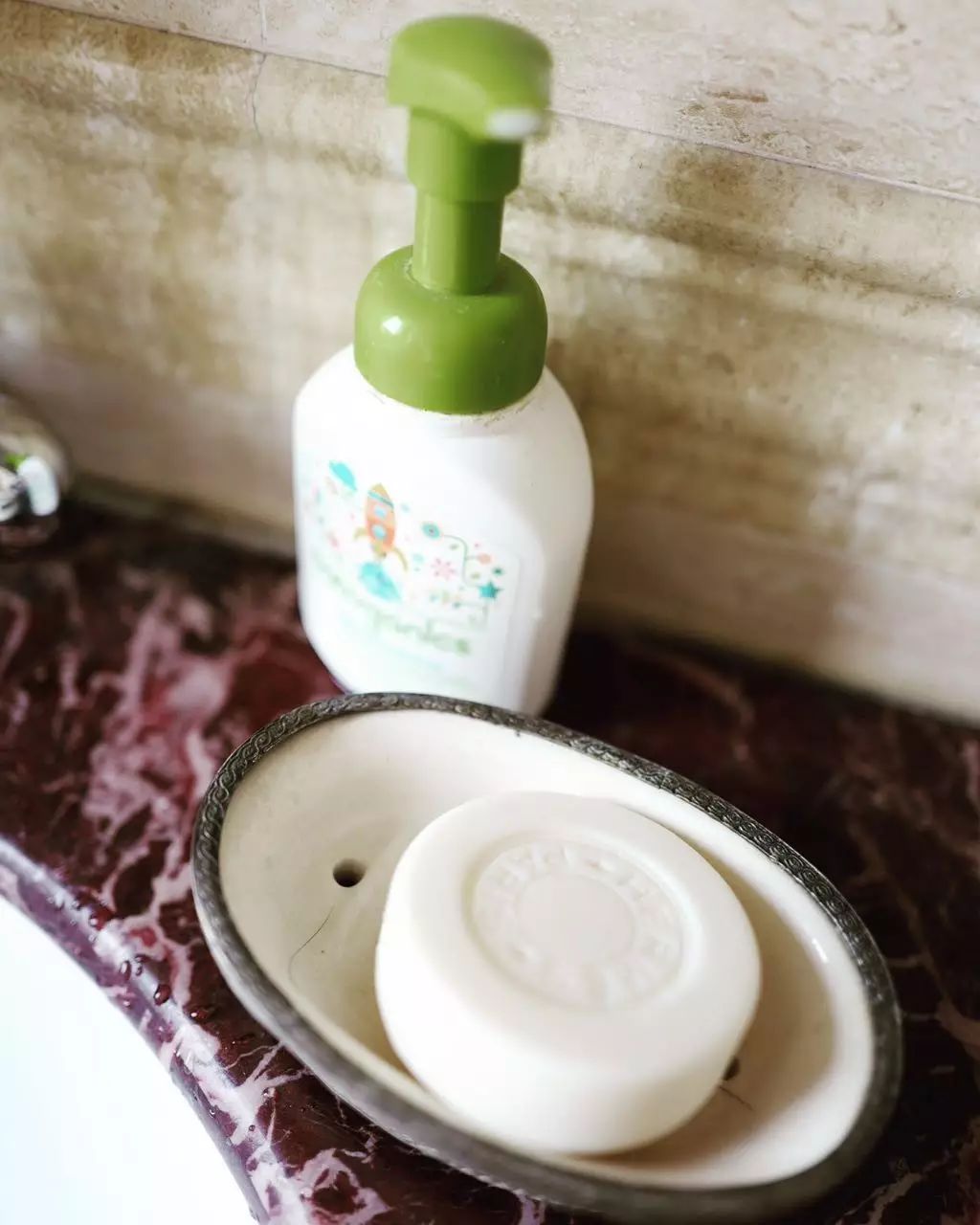 还有一块皂皂,味道好好闻,洗完手整个洗手间都是香香的。