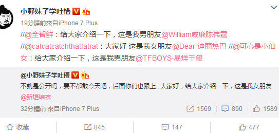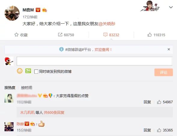 10月8日中午鹿晗在微博公开与关晓彤的恋情
