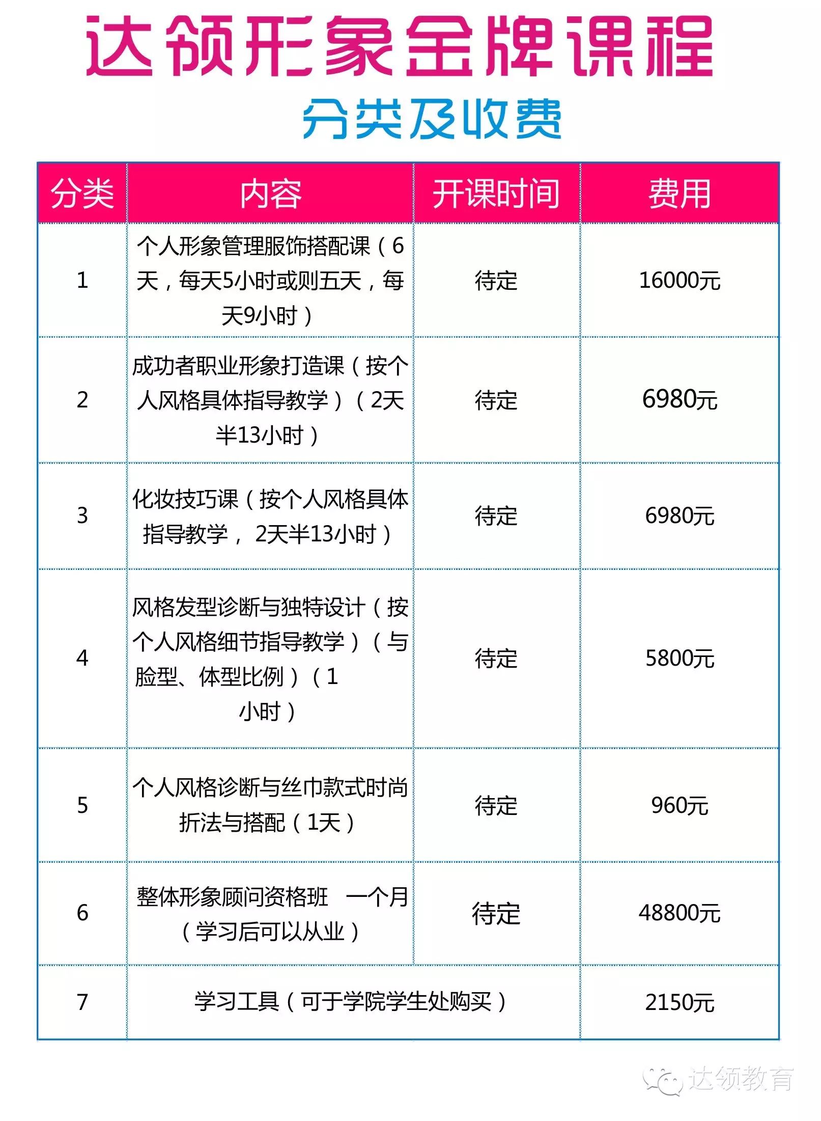 【私人定制】达领学院国际形象服务与课程分类和收费标准The Service and Courses