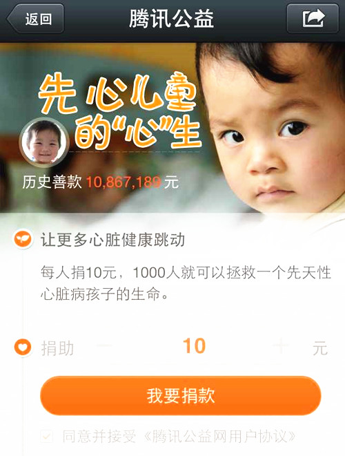 “网救童心”项目,是爱佑慈善基金会联合中国儿童少年基金会、腾讯网友爱心基金,上线腾讯网络平台的贫困先心病儿童救助项目。“网救童心”项目上线3年,共收到近30万网友的爱心捐助,累计善款超过1000万。